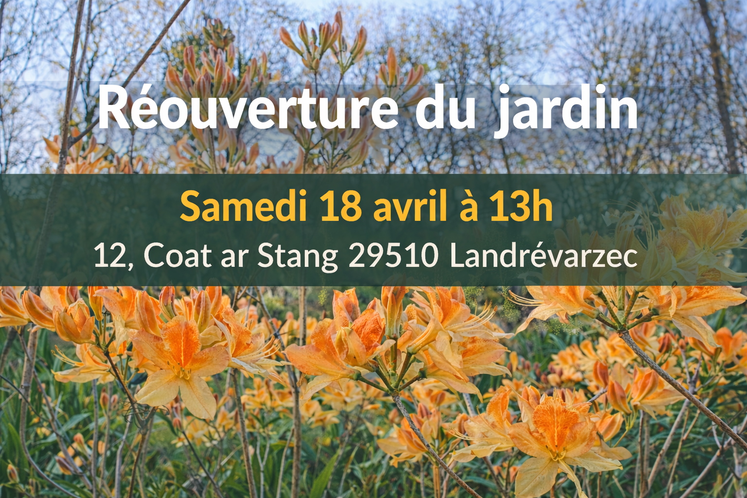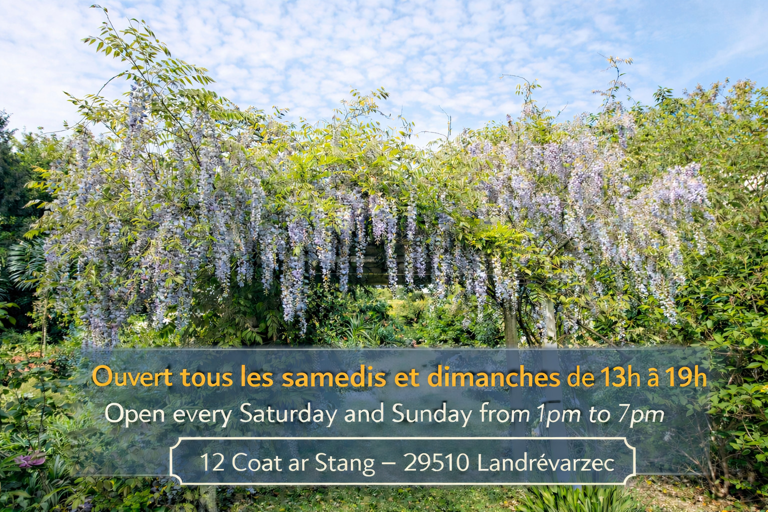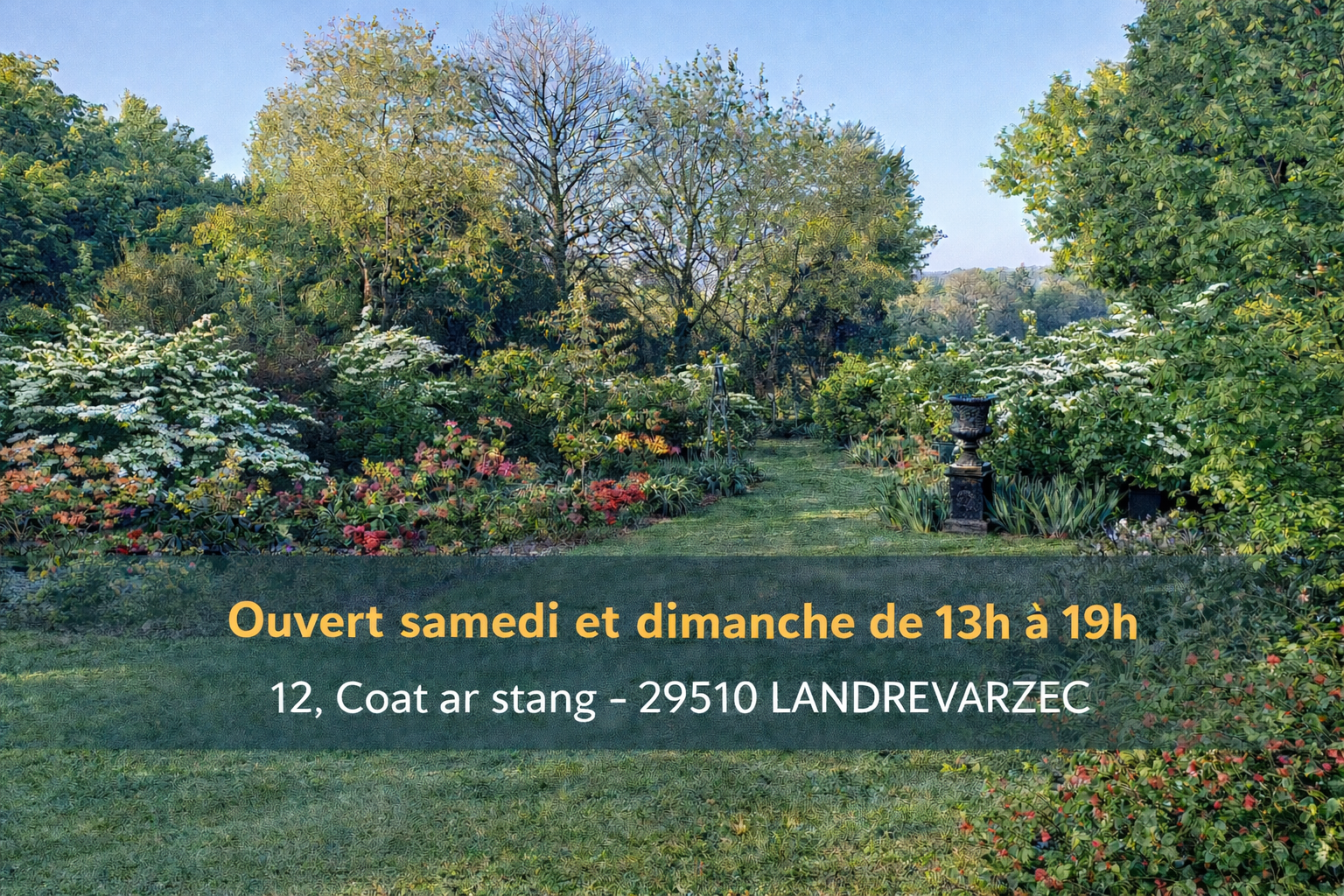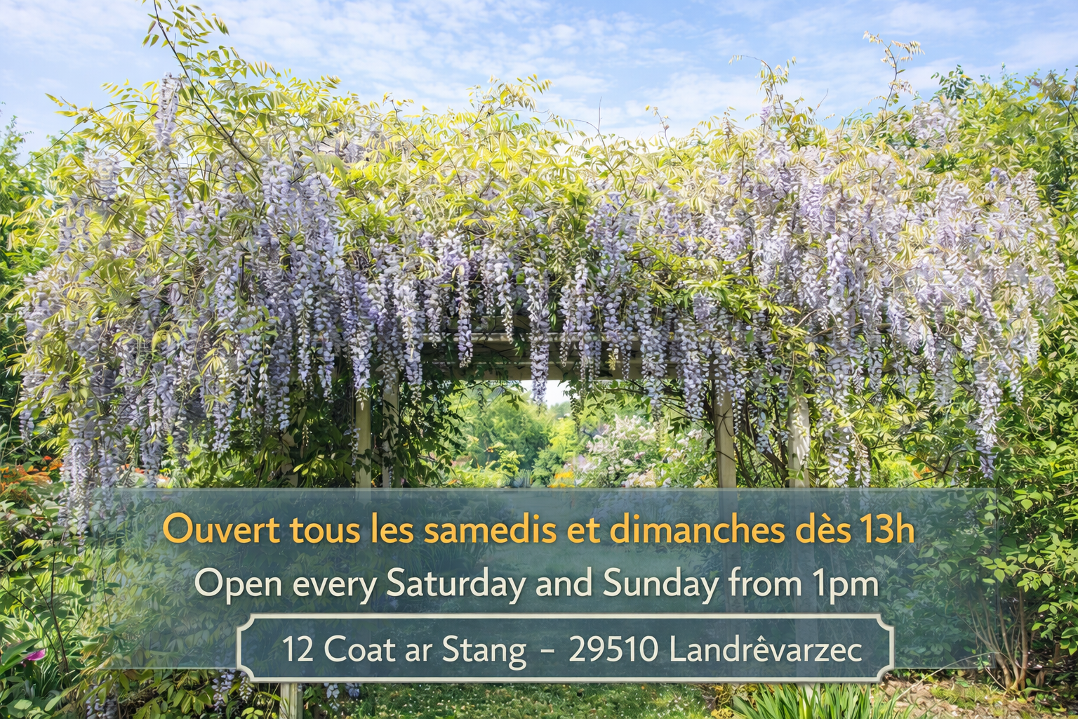 Situé dans la campagne de Landrévarzec, dans le Finistère, le jardin se distingue par ses floraisons abondantes du printemps à l'été. Il offre une parenthèse paisible, propice à la promenade et à la rêverie