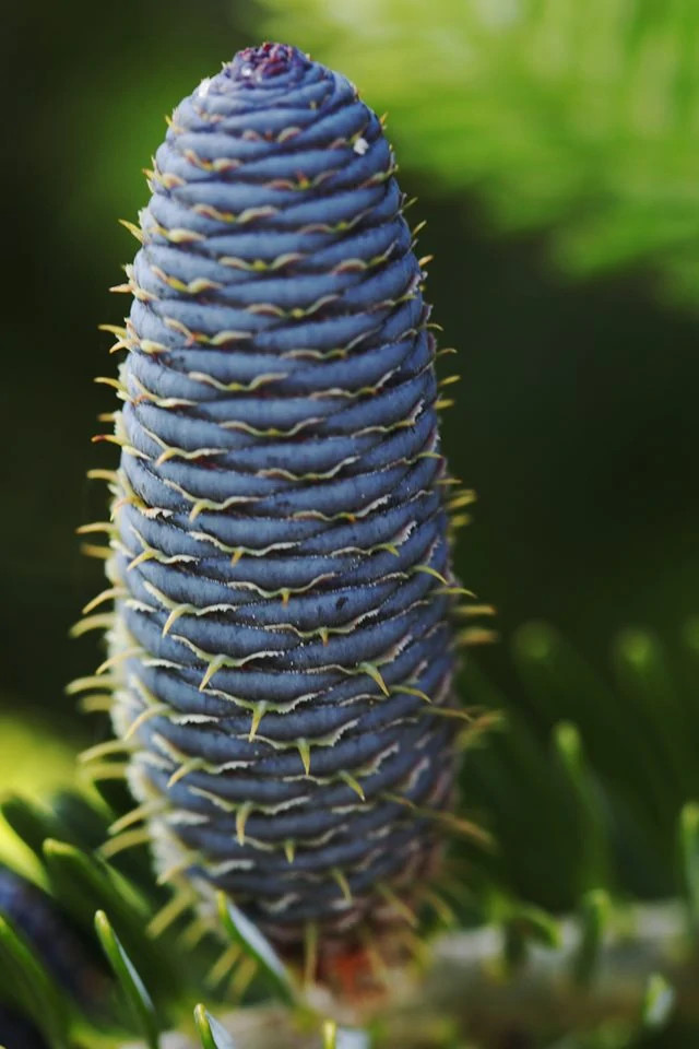 L'Abies koreana est un conifère compact et élégant, très apprécié dans les jardins pour son port pyramidal dense, son feuillage vert lustré orné au revers d'un bleu argenté lumineux, et surtout pour ses cônes violets à pourpres qui apparaissent dès le plus jeune âge.