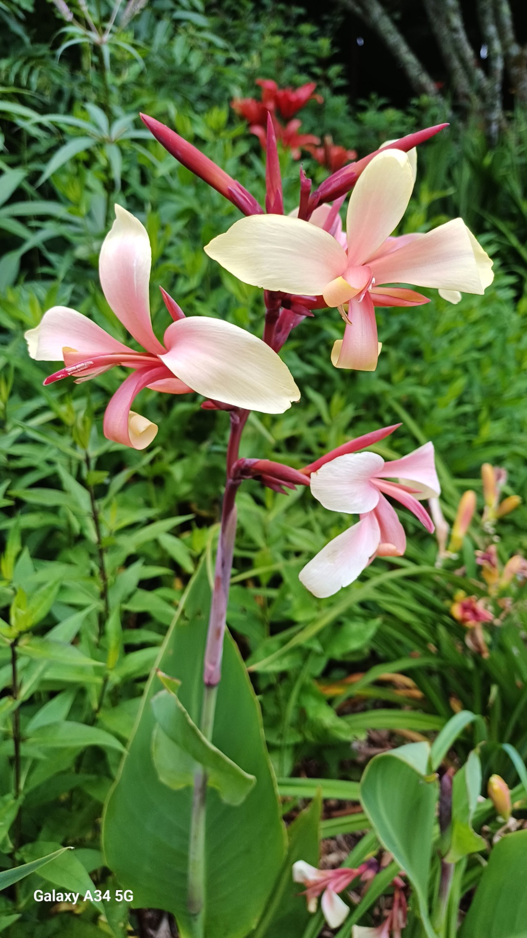 Ses fleurs jaune pâle à crème, légères et élancées, s'épanouissent durant tout l'été. Elles attirent une multitude de pollinisateurs et contrastent délicatement avec son feuillage éclatant. Adapté aux sols frais, voire détrempés, ce canna trouve sa place en berges de bassin, dans les jardins humides, ou encore en grandes potées que sa vigueur remplit rapidement.
