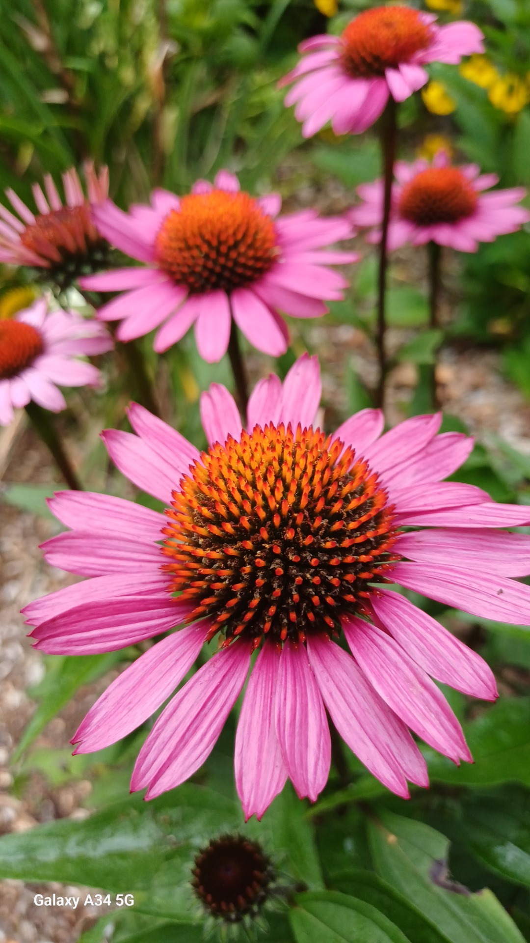 Les échinacées, aussi appelées rudbeckies pourpres ou coneflowers en anglais, sont des plantes vivaces originaires des grandes plaines d'Amérique du Nord. Elles doivent leur nom au mot grec ekhinos, signifiant « hérisson », en référence à leur cœur central bombé et piquant qui se dresse au-dessus de pétales retombants.