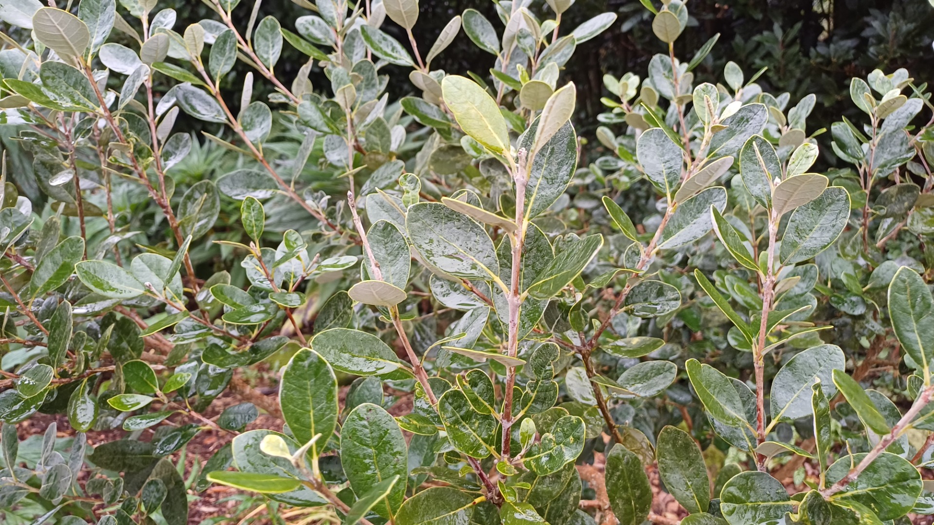Cet arbuste persistant forme un port arrondi et dense, atteignant généralement 2 à 4 mètres de hauteur. Ses feuilles ovales, épaisses et coriaces, présentent une face supérieure vert foncé et un revers argenté, conférant à la plante un aspect lumineux et élégant tout au long de l'année. Il s'intègre facilement dans les jardins d'ornement, en haie libre ou en sujet isolé.