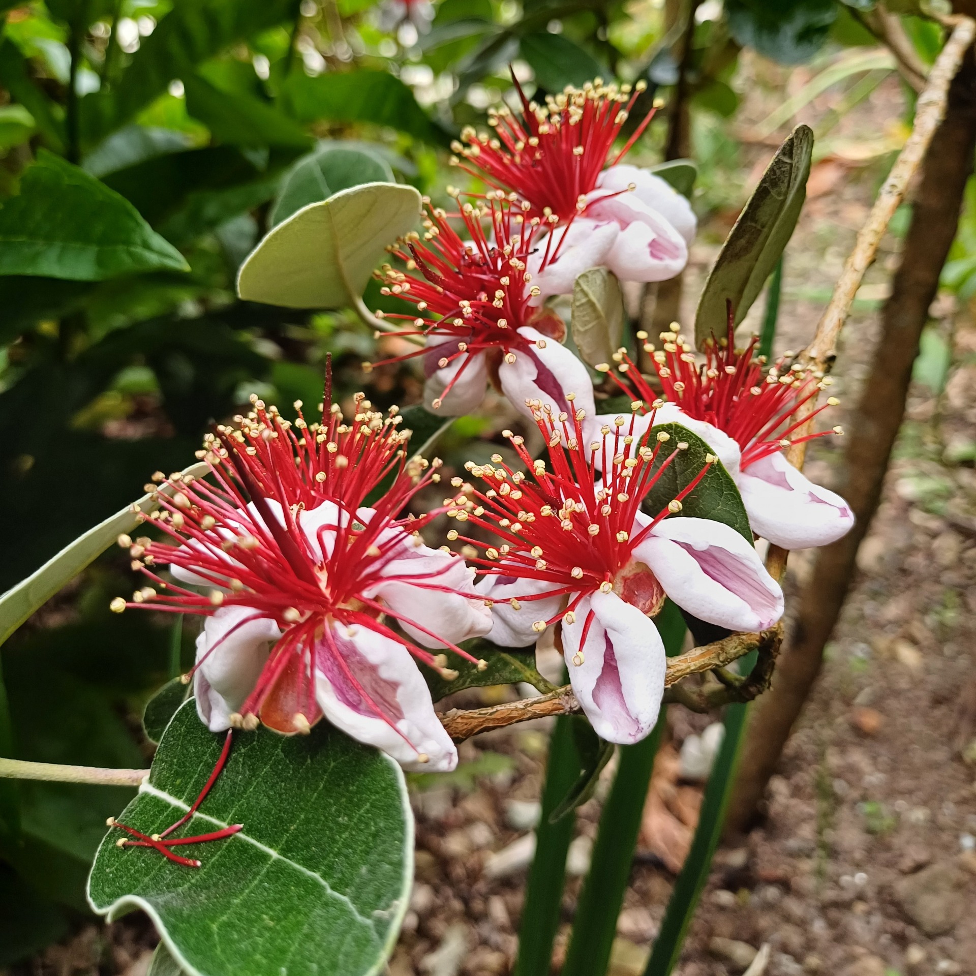 Le goyavier du Brésil (Acca sellowiana), également connu sous le nom de feijoa, est un arbuste fruitier et ornemental originaire d'Amérique du Sud, principalement du sud du Brésil, d'Uruguay et du nord de l'Argentine. Appartenant à la famille des Myrtacées, il est apprécié à la fois pour son feuillage décoratif, sa floraison spectaculaire et ses fruits parfumés.