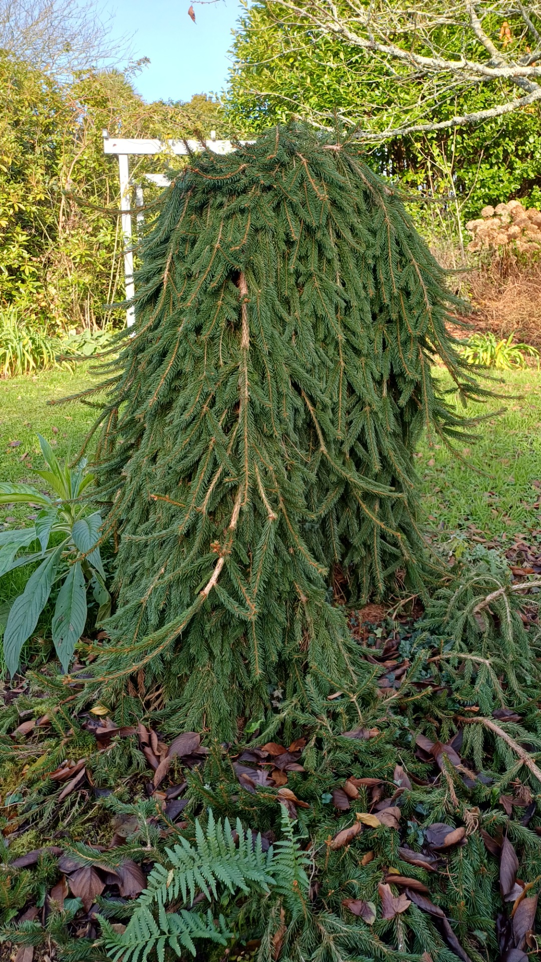 Ce conifère attire immédiatement le regard : ses branches étroites, pendantes et irrégulières créent une silhouette singulière, presque fantomatique en hiver et magnifiée par la lumière rasante. En été, il se pare d'une superbe teinte bleu-vert, propre à l'espèce Abies procera, donnant au jardin une note de fraîcheur et d'élégance.