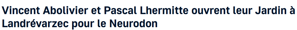 Un Jardin à Landrévarzec située au 12, Coat ar Stang ouvrira pour la première fois ses portes au public, samedi. Il sera ouvert pendant 130 jours, jusqu'au 30 septembre, de 14 h à 19 h. Ce jardin ornemental d'une surface de 8.500 m², avec une vue imprenable sur la vallée du Steïr, offre des thèmes qui invitent à la détente et à la quiétude : ruisseaux, gloriette, potager fleuri, jardin de style japonais, champ de tournesols, prairie fleurie, bassins... Les collections d'arbres, arbustes et vivaces proviennent des cinq continents, Europe, Asie, Afrique, Amérique et Océanie. Ce jardin vient d'être référencé par le Comité des parcs et jardins de France et bientôt par l'association des Parcs et jardins de Bretagne. Dans un souci de respect de l'environnement et de la biodiversité, tout le désherbage se fait de façon manuel. Le jardin participera par ailleurs à l'opération « Jardins ouverts pour le Neurodon » qui vient en aide à la recherche sur le cerveau, les 5, 6, 7 et 8 mai, de 14 h à 19 h. Pour chaque entrée, 2 € seront reversés pour la recherche. Le jardin de Coat ar Stang participera également à l'événement organisé par le ministère de la Culture, Rendez-vous aux jardins, les 1e r, 2 et 3 juin.